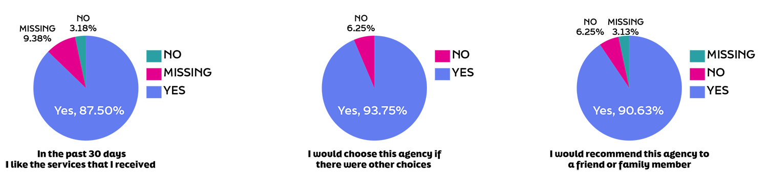 Hillcrest consumers are provided the opportunity to identify their perception of care. This refers to the client’s perspective on the services they have received and the staff that they interacted with over the past 30 days.